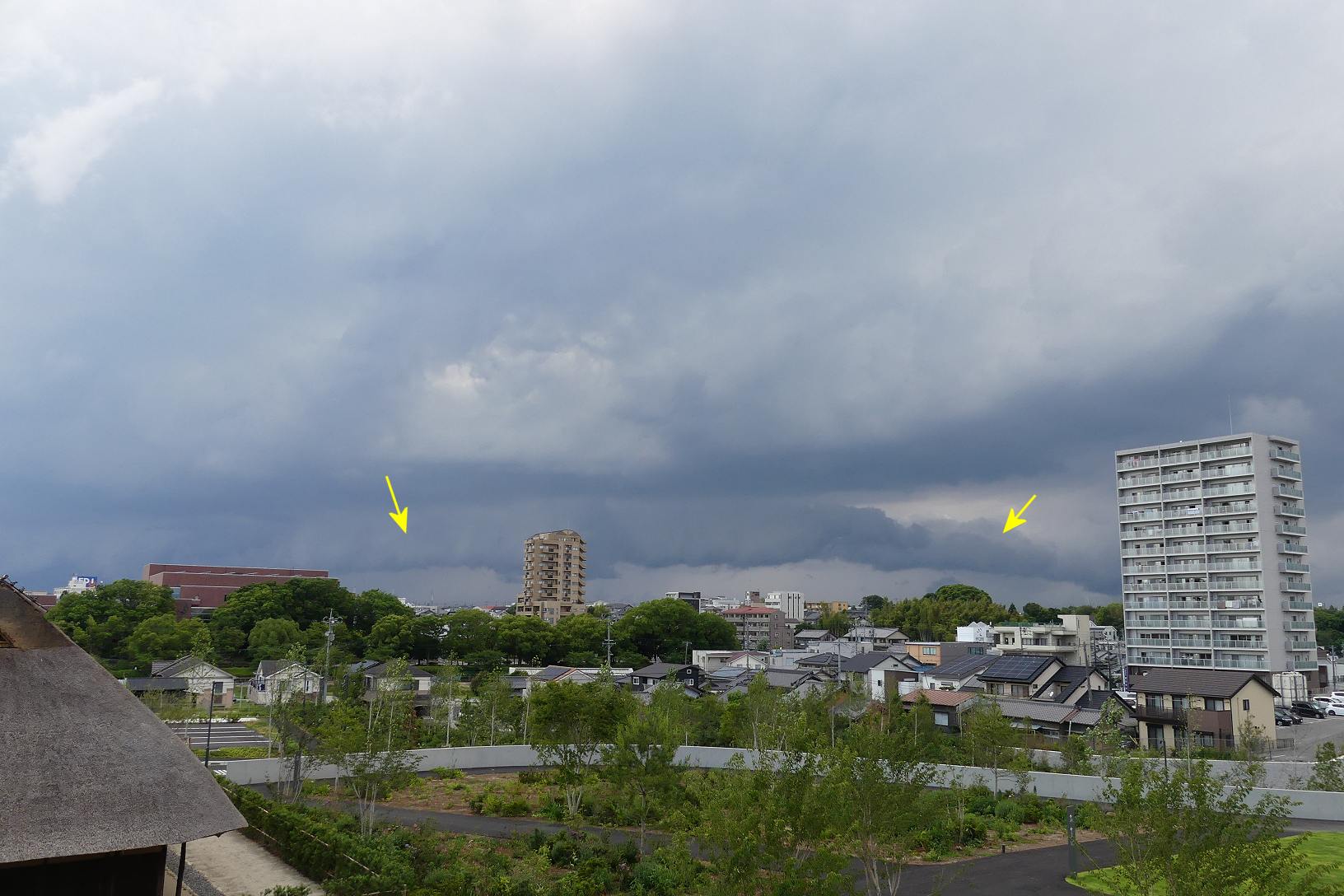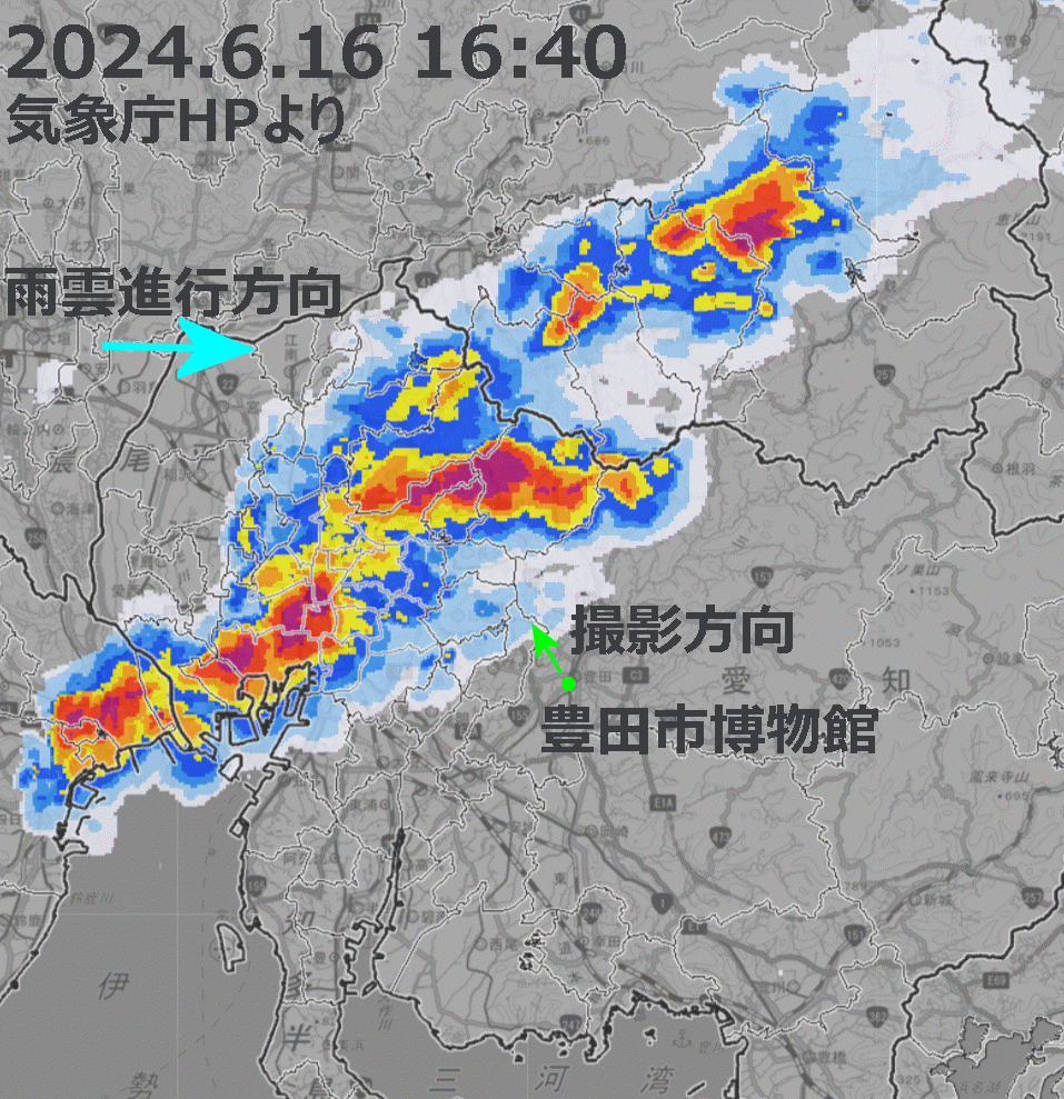 2024年6月16日、豊田市博物館から見て北西の方角にアーククラウドが見えた。綺麗な形でないのが残念。なお撮影後、15分で雨が降ってきた。