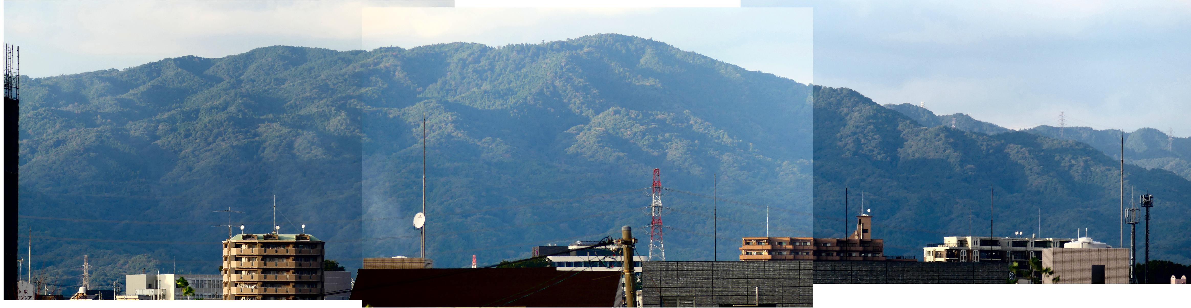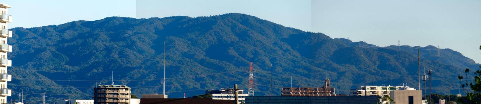 太陽高度が低い方が、影により尾根・谷の地形が分かり易い。そこで朝と夕方、豊田市博物館の駐車場から猿投山を撮影した。