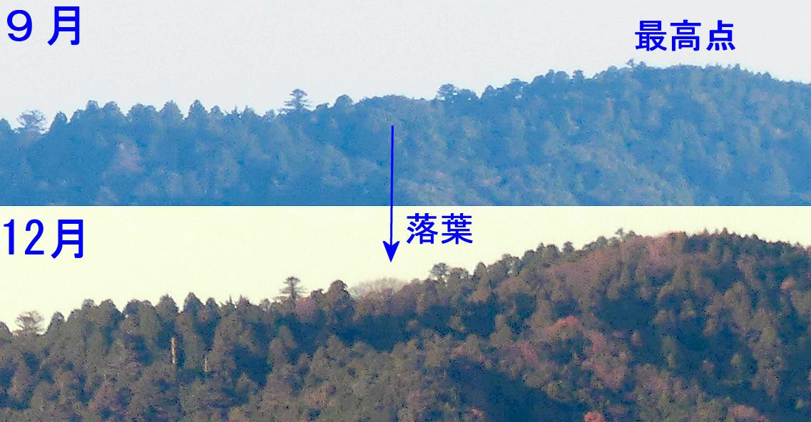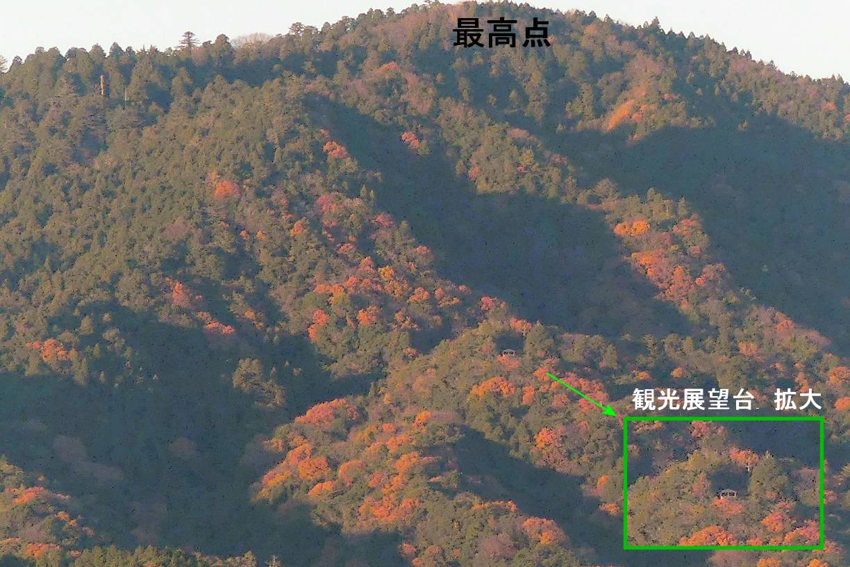 こちらは、別の日に撮影した観光展望台(紅葉後半の2024年12月12日_夕方16時半)ですが、こちらの方が少し明瞭です。(注:撮影場所が、これまでの写真と100m程異なっています)。