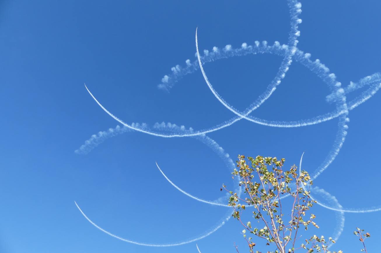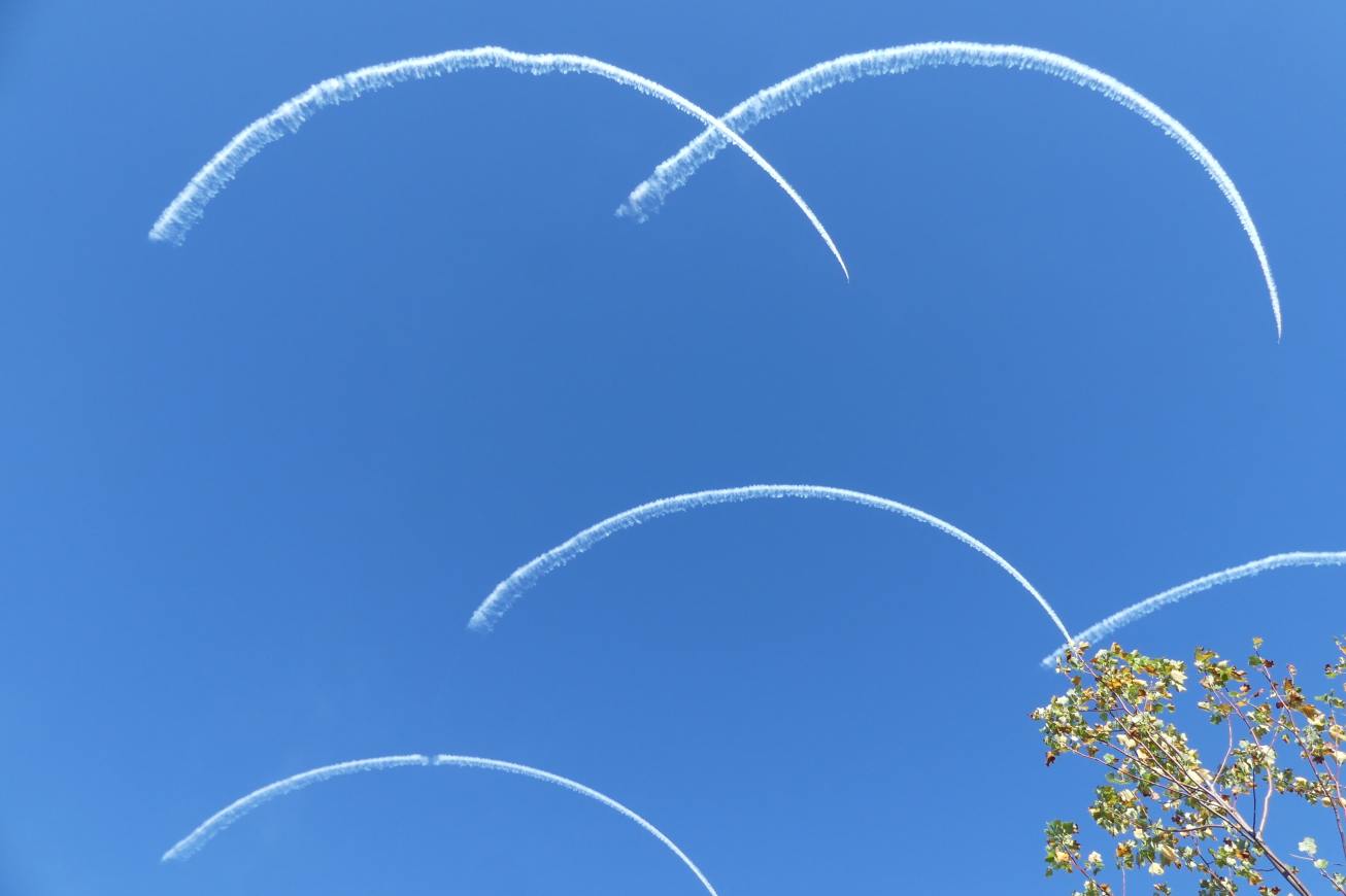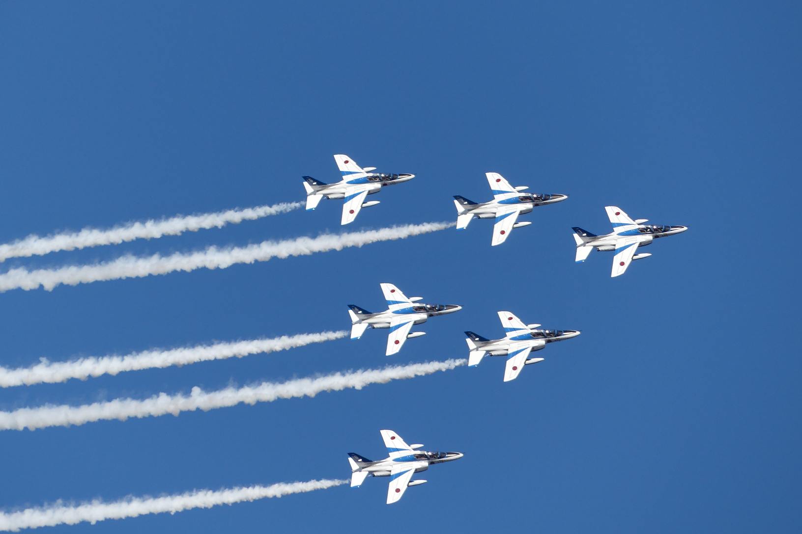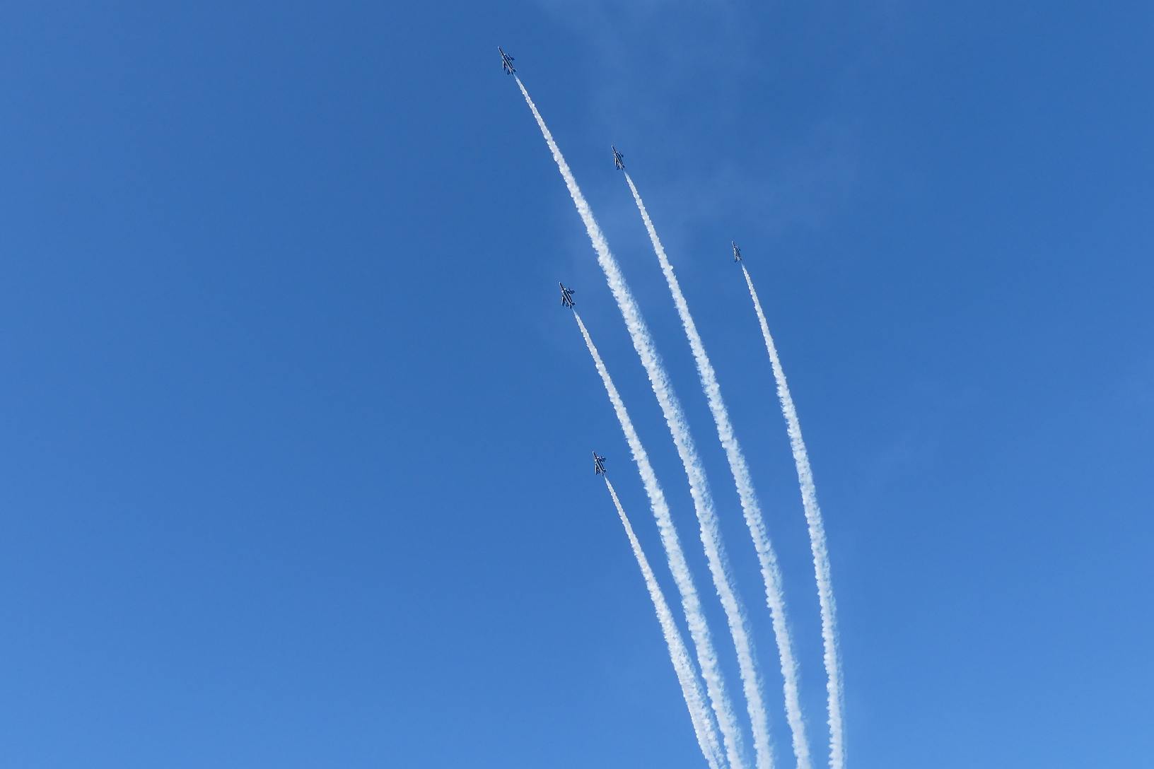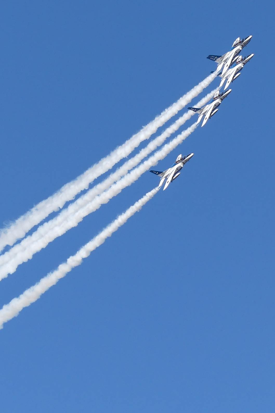 FIA世界ラリー選手権「フォーラムエイト・ラリージャパン2024」大会初日(11月21日)の航空自衛隊ブルーインパルス展示飛行。画像をクリックすると少し大きくなります。