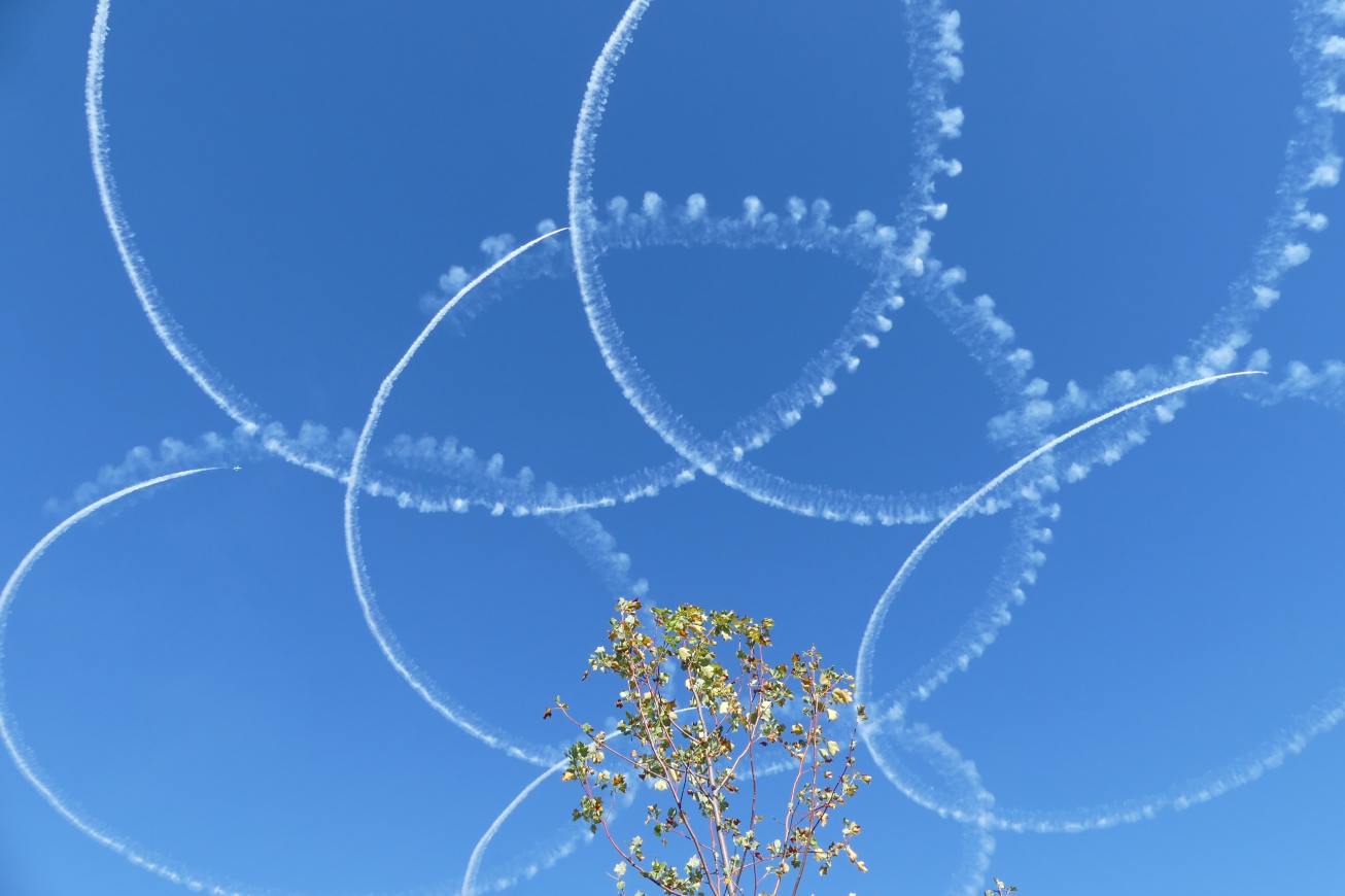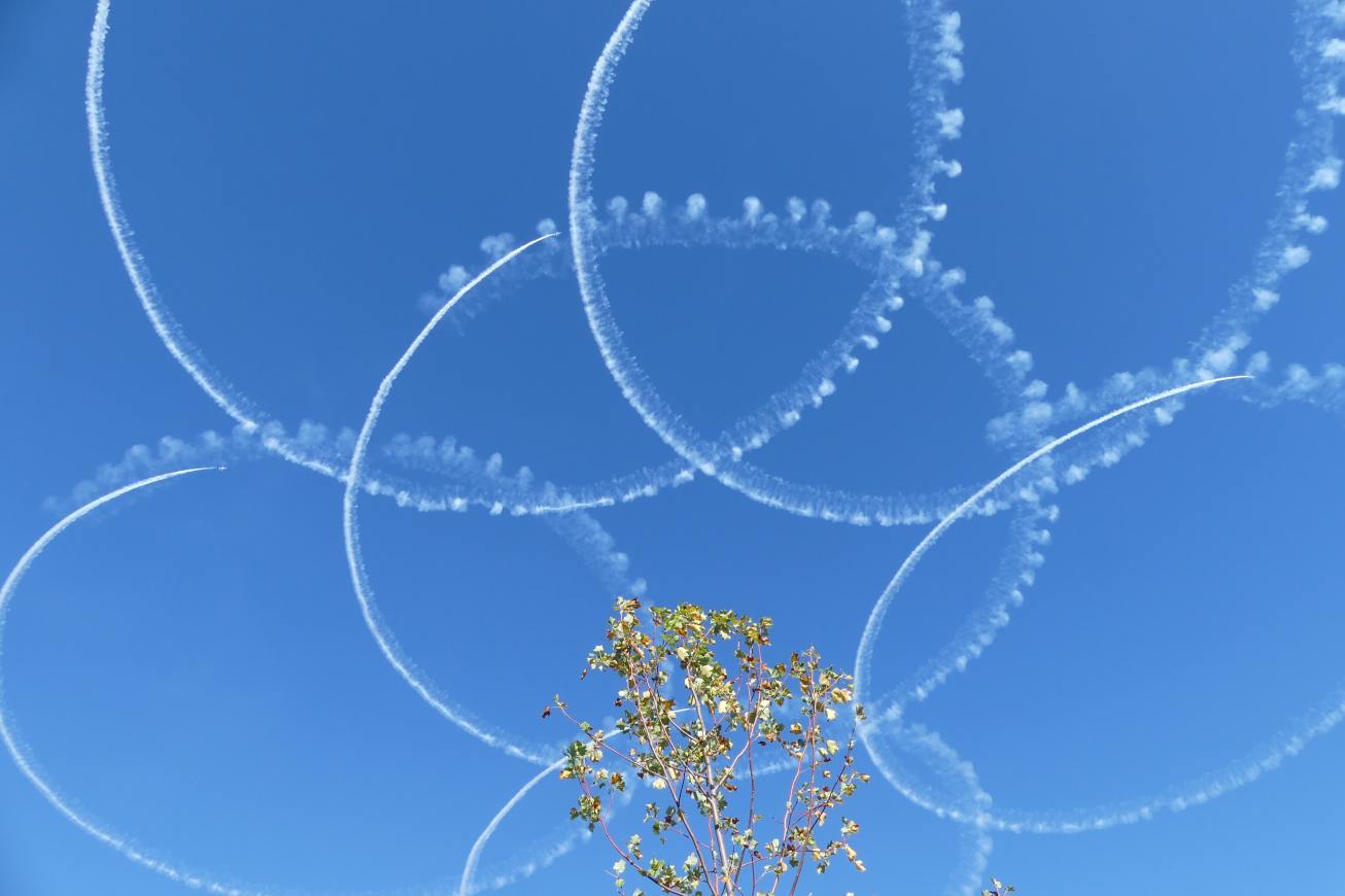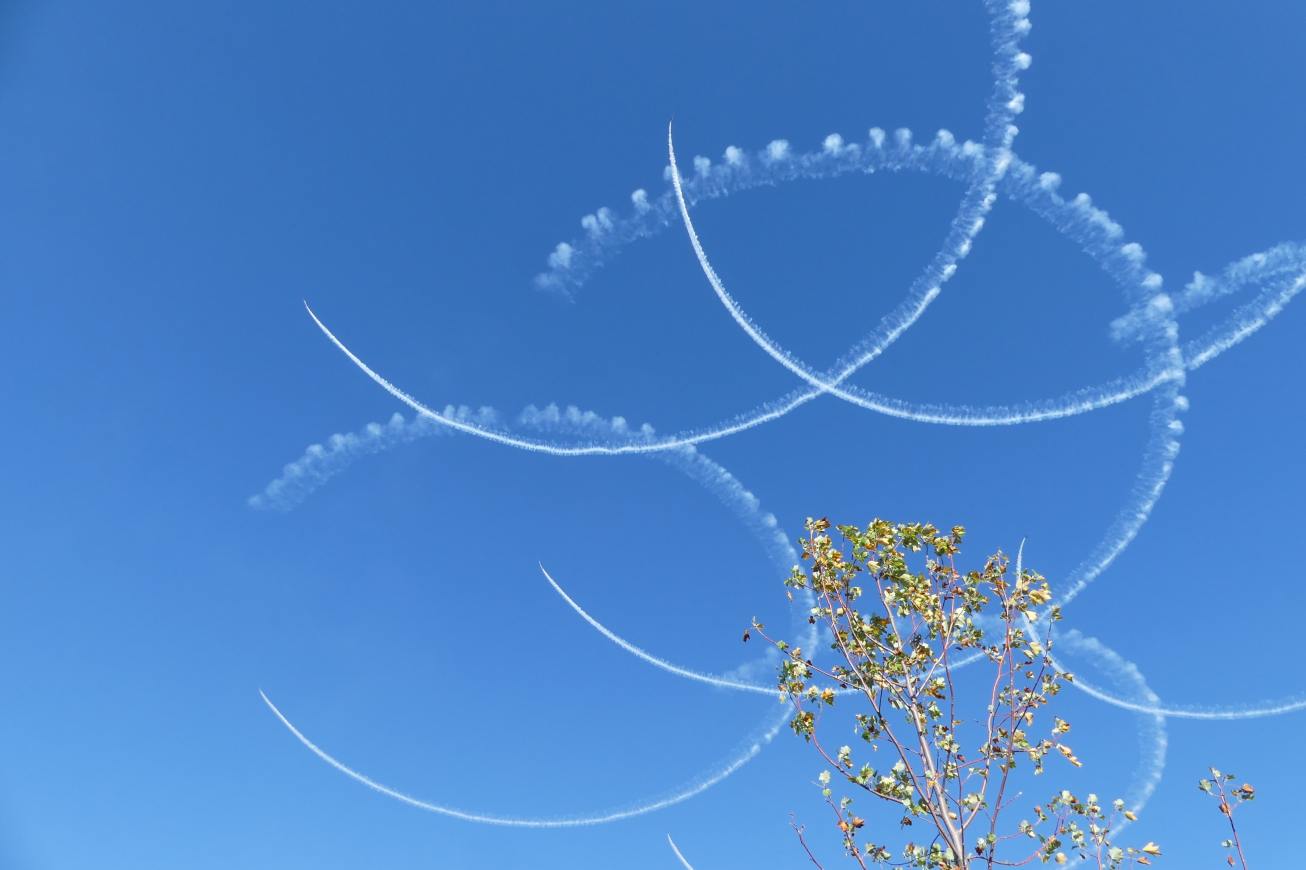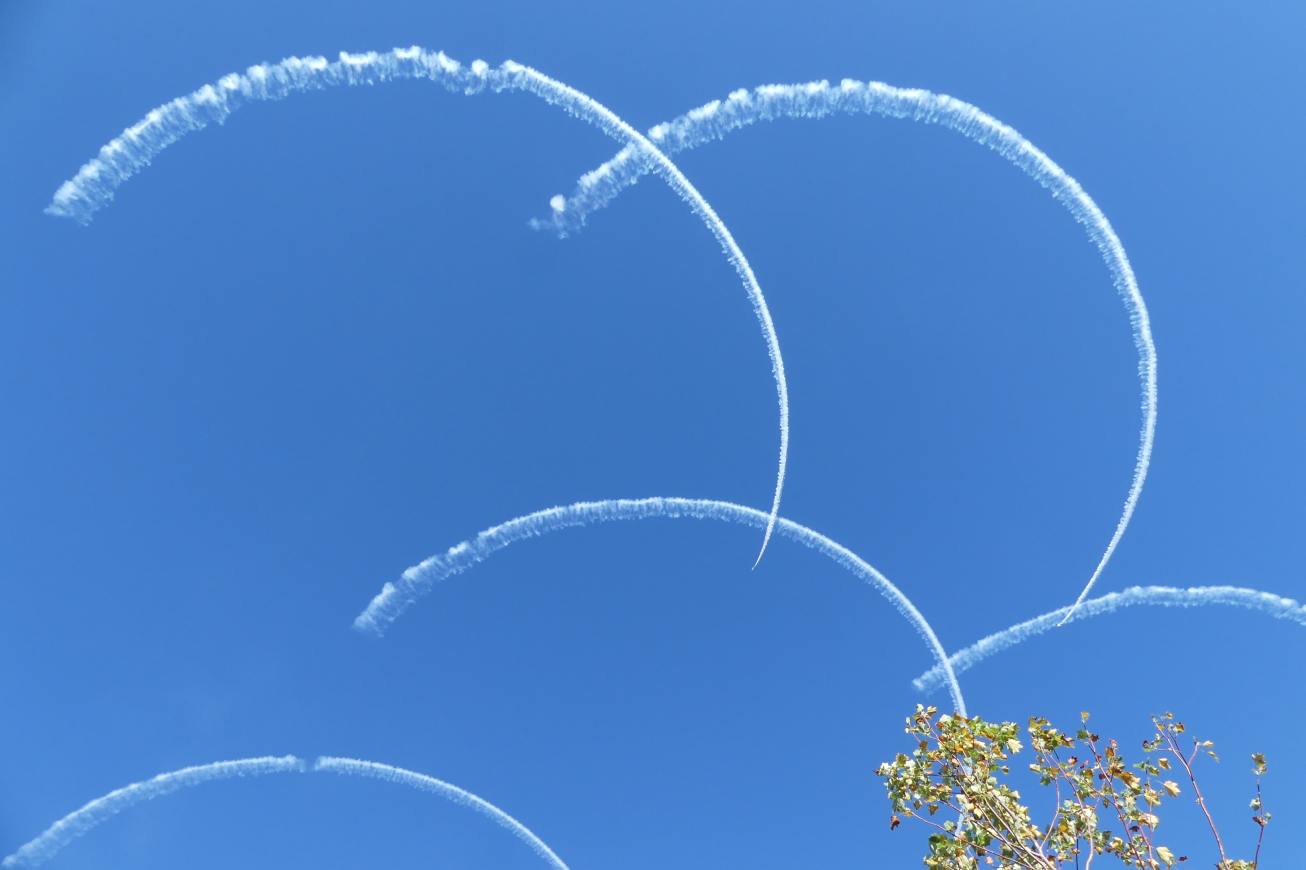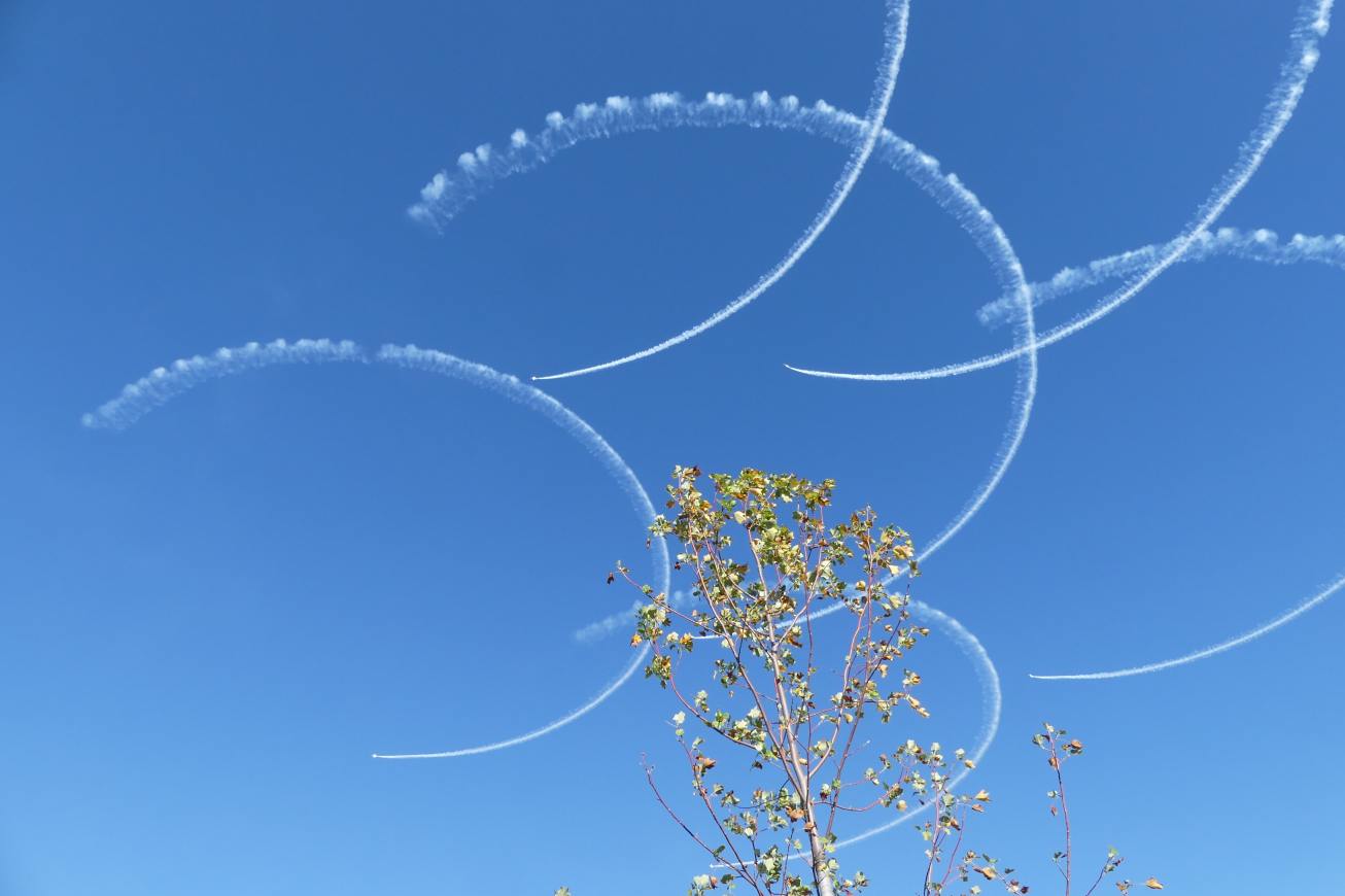 FIA世界ラリー選手権「フォーラムエイト・ラリージャパン2024」大会初日(11月21日)の航空自衛隊ブルーインパルス展示飛行。画像をクリックすると少し大きくなります。