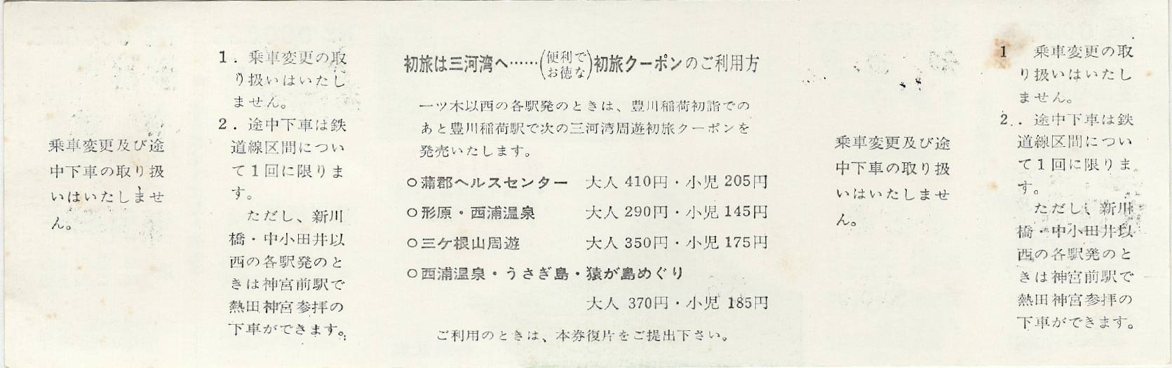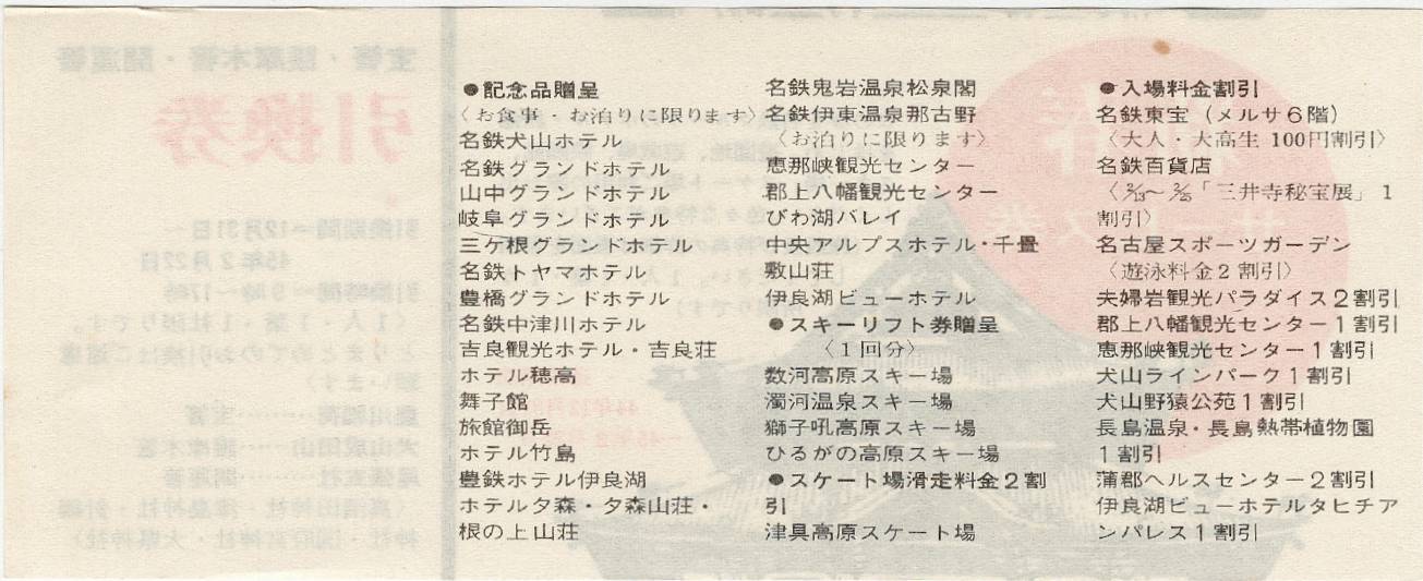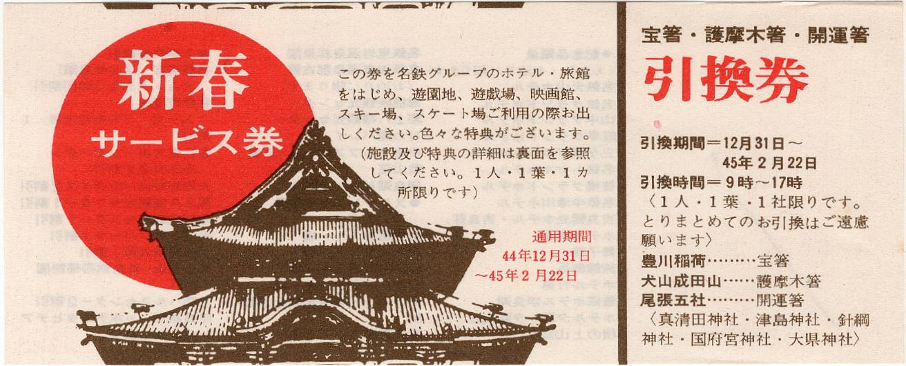 名鉄のサービス券付き豊川稲荷初詣切符(昭和45年、1970年)