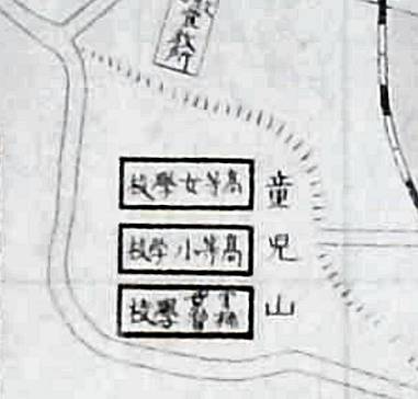 <挙母裁縫補修学校が存在した童子山の地図>